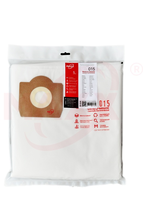 Фильтр-мешки сменные синтетические МАХХ 015 (5) D015STMC3WA предназначены для пылесосов: AEG, ANNOVI REVERBERI, ASTOL, BOREMA, BORT, BOSCH, BULS, CHAO BAO, COMET, CRAFTSMAN, DELVIR, DEWALT, Dexter, DMS, DRAPER, EINHELL, ELSEA, ENERGER, FAKIR, FIORENTINI, FOXWELD, GAOMEI, GRASS, HAKO, HECHT, HITACHI, INTER DYNAMICS, INTERTOOL, IPC Portotecnica, IPC Soteco, KAMINER, KERRICK, KOBLENZ, KRAFT, Kraftman, KS Klinsystem, LAVOR, MAC ALLISTER, MAKITA, MalTec, MAUK, MICHELIN, MILWAUKEE, MINUTEMAN, NACS, NIDO, NILCO, NILFISK, NILFISK Advance, NILFISK ALTO, OBI, PACVAC, PARKSIDE, PATRIOT, POWERPLUS, PROFI, PROGRESS, PROTOOL, ROYALTY+LINE, SPARKY, STANLEY, STIHL, TENNANT, TITAN, TMB, TOR, TORNADO, VACMASTER, VANDER, VICTOR, VINIS, WETROK, WIRBEL, КОРВЕТ, СОЮЗХарактеристики