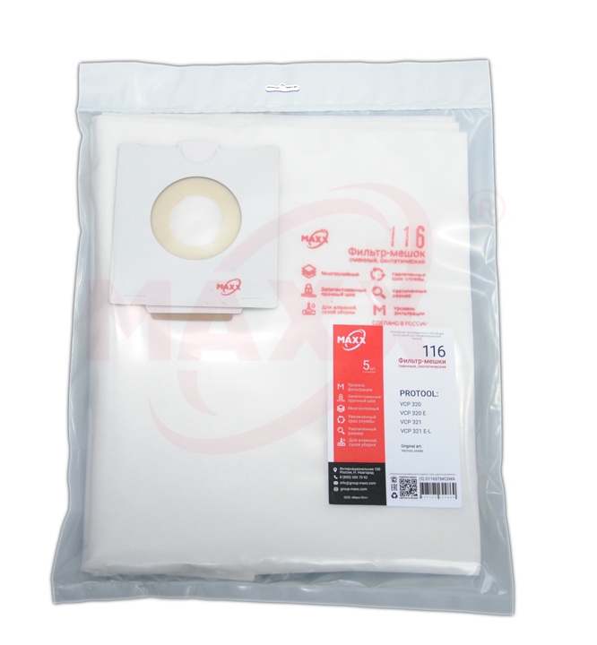 Фильтр-мешки сменные синтетические МАХХ 116 (5) D116STMC3WA предназначены для пылесосов: PROTOOLХарактеристики